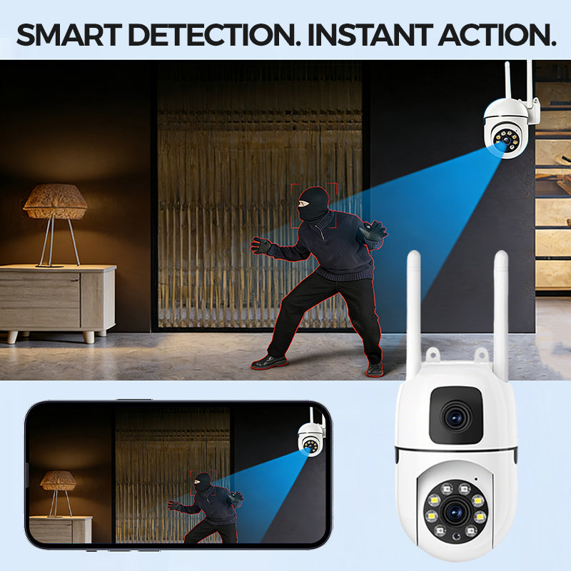📹🔒 50% RABATT | Begrenset Tid! 4K Overvåkningskamera med 360° Pan-Tilt & Dobbelt Objektiv